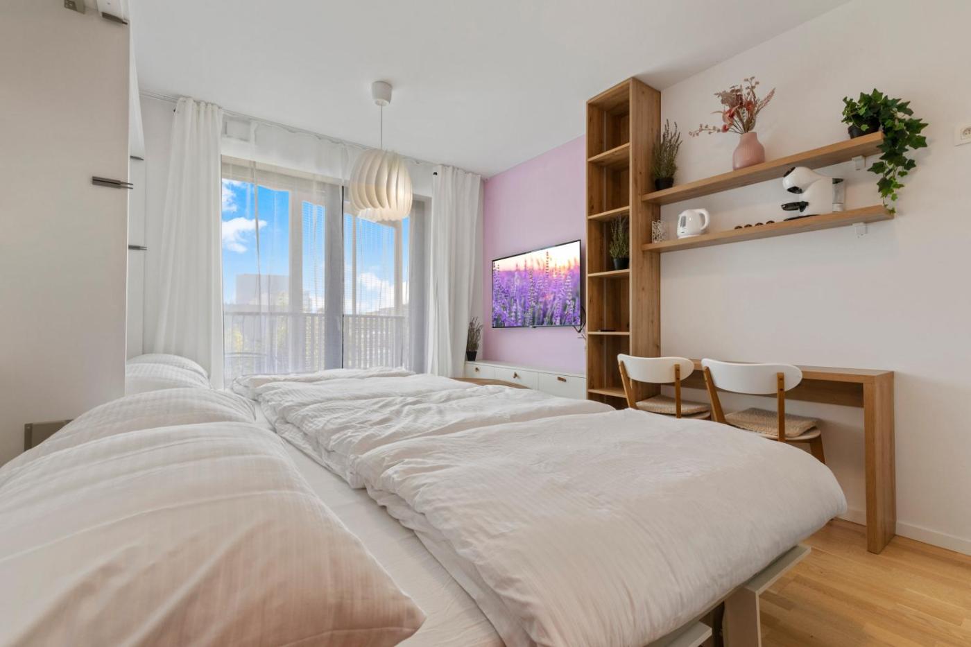 Situated within the Nove Mesto district in Bratislava, LAM Lavender - FREE PARKING has air conditioning, a balcony, and garden views. Boasting a lift, this property also provides guests with an outdoor fireplace. There is a sun terrace and guests can make use of free WiFi, free private parking and an electric vehicle charging station.