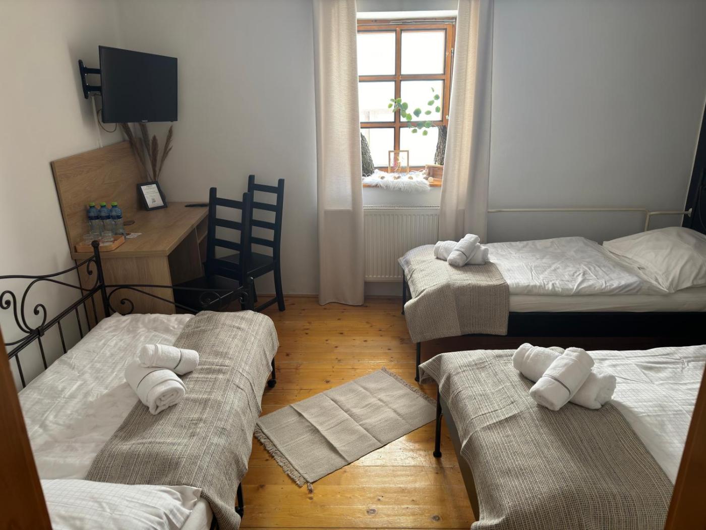 Triple Room. Providing free toiletries, this triple room includes a private bathroom with a shower and a hairdryer. The triple room provides a flat-screen TV with streaming services, a tea and coffee maker, a seating area, a wardrobe as well as garden views. The unit offers 2 beds. ;